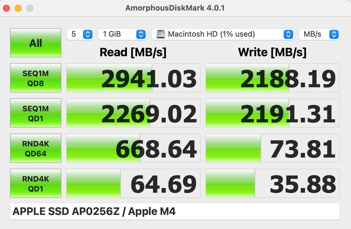 Базового чипа M4 хватает для всех моих задач по части CPU, в работе интерфейса нет проблем. Mac легко справляется с двумя подключенными мониторами 4К, множеством окон с видео, ide и тд.