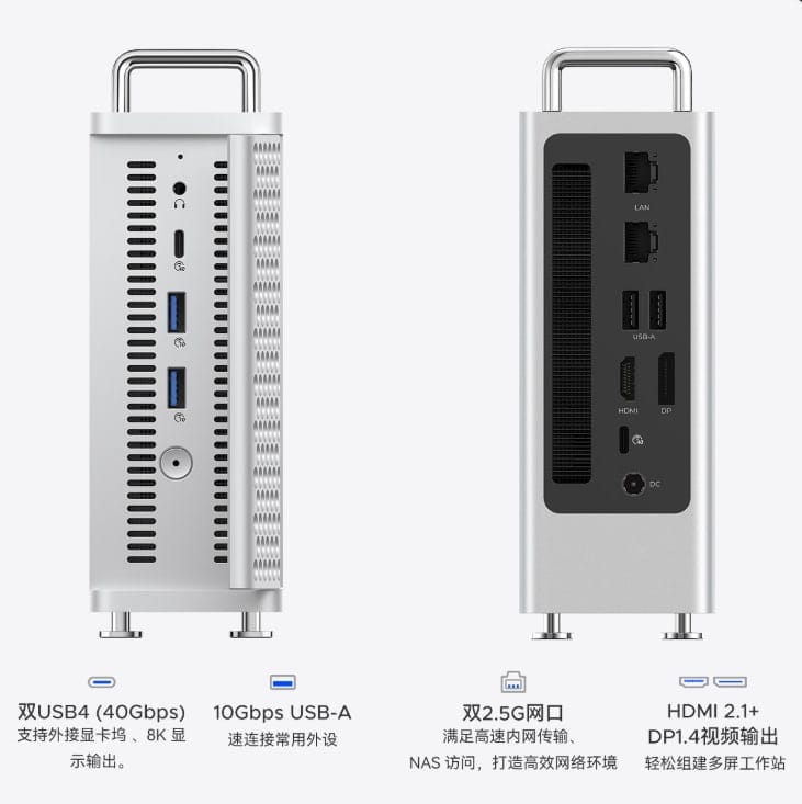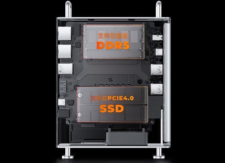 Компания ORICO анонсировала компактный настольный ПК OmniPro с алюминиевым корпусом, вдохновлённым Mac Pro, но всего 139 × 61 × 185 мм. Внутри — Ryzen 7 8845HS (8 ядер, 16 потоков) и графика Radeon 780M, 32 ГБ DDR5 и до 2 ТБ SSD. Производитель заявляет общую «вычислительную мощность ИИ» в 38 TOPS, хотя NPU даёт лишь 16 TOPS.